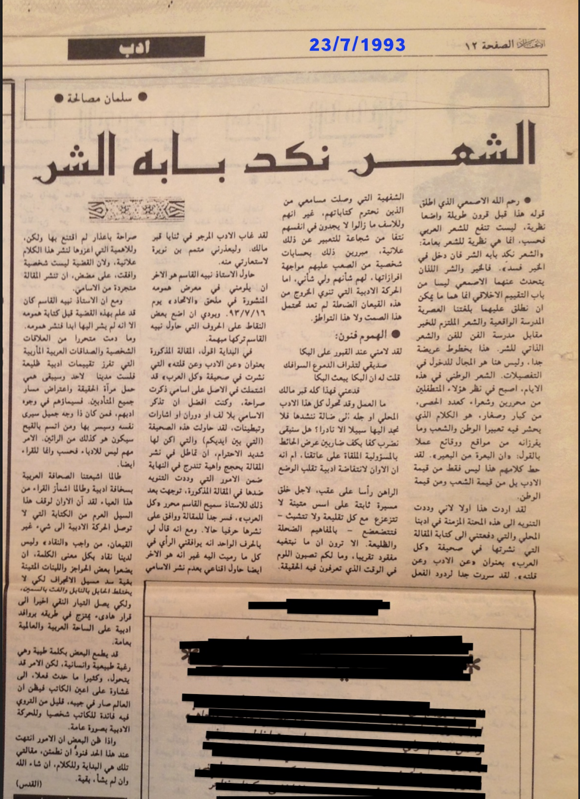حول الشعر المحلّي: من الأرشيف: (1993)